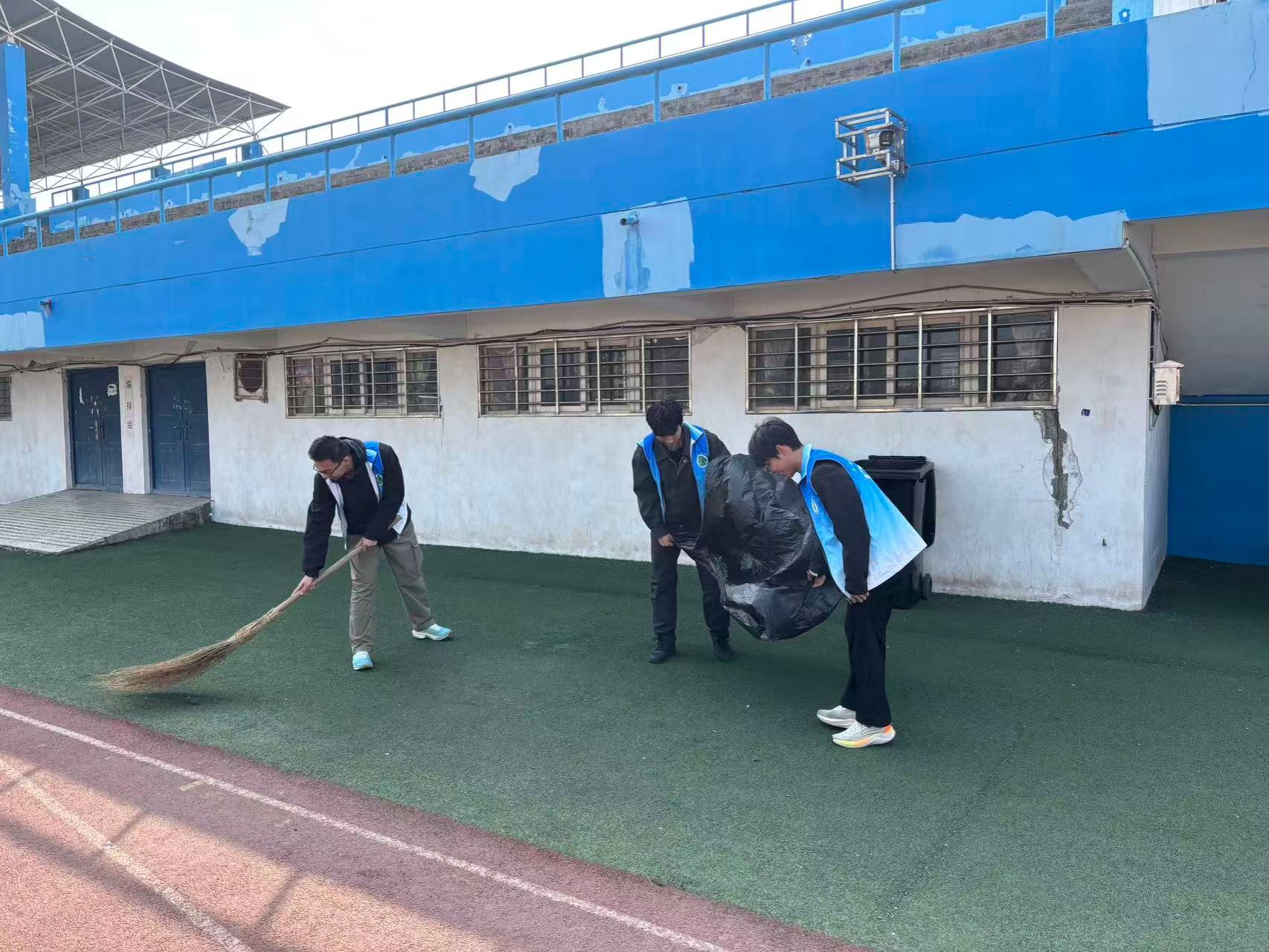 体育学院以班级为单位划分责任区域,组织志愿者开展“净美校园”环境守护行动,聚焦体育馆周边,清理地面垃圾、擦拭宣传展板、维护周边绿化区域,用双手扮靓校园,倡导文明卫生习惯。