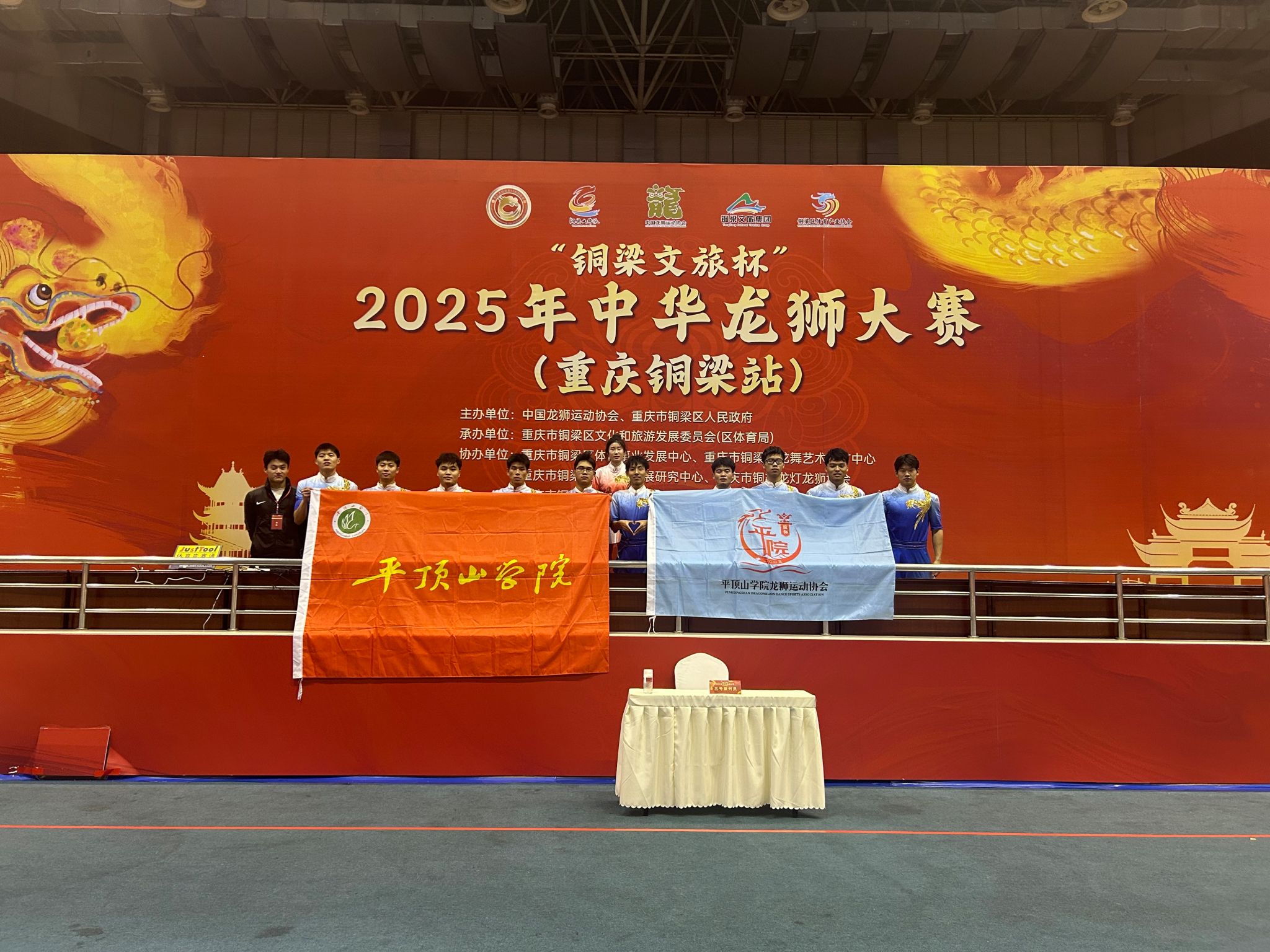 12月19日至21日,由中国龙狮运动协会和重庆市铜梁区人民政府主办、重庆市铜梁区文化和旅游发展委员会(区体育局)承办的2025年中华龙狮大赛(重庆铜梁站)在重庆市铜梁区金龙体育馆举行,本次比赛共设有舞龙自选套路、北狮自选套路、彩带龙自选套路三个竞赛项目。我校舞龙队由体育学院副院长王兵柯担任领队,在教练员段高营老师的指导下参加舞龙自选套路项目的比赛。