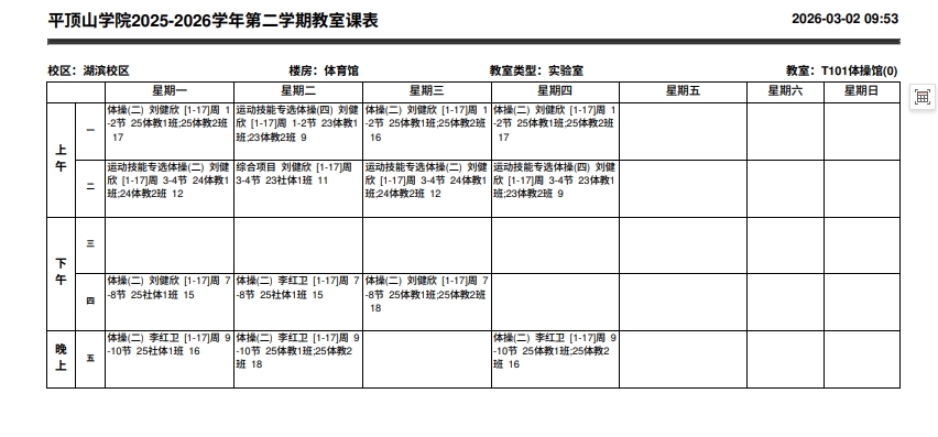 T101体操馆课表